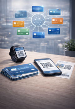 Here, all card types—from guest cards to all-inclusive and prepaid models such as city passes to employee, citizen, and event cards—are centrally created, controlled, and expanded. The platform supports all media formats such as MobileCard, Wallet, Print@Home, PVC or cardboard cards, all of which are based on a common identity (QR code, NFC/RFID, third-party IDs, PIN).